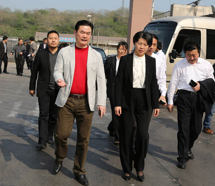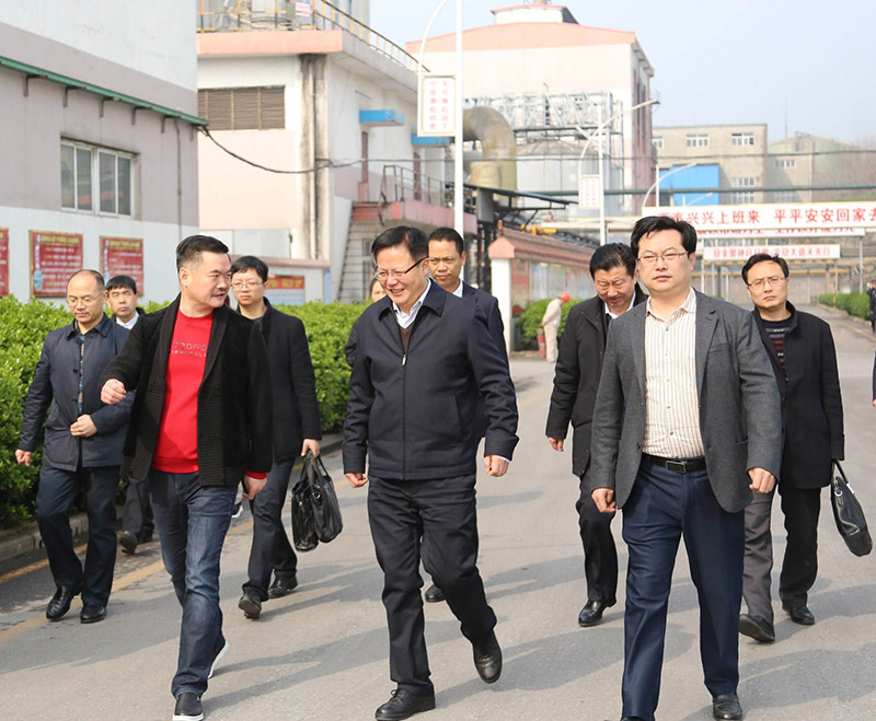 现任湖北省副省长,时任荆门市委副书记、市长肖菊华(前右)在公司董事长杨才学(前左)的陪同下调研乐鱼体育