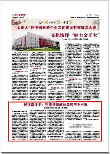 坚守质量就是在坚守一种文化,一种为企业生存立本提供准则,对企业发展具有导向作用,确保企业生产经营有序开展的文化,这种精神引导下诞生的产品、崛起的品牌,一旦被传承、被认同、被铭记,其影响将是经久不息的。洋丰业务员好几次在市场走访过程中与客户攀谈时,“小伙子,你们洋丰肥真的不错哩,去年我家小麦地用的就是,一亩地收了1470斤呐!”每走一地都能听到农民如此对洋丰肥发自内心的赞叹。农资界的朋友也许都清楚,现在农民用肥都是比较“挑剔”的,因为肥料的好坏直接关系到一年的收成。朴实厚道的老农道出简单的“不错”俩字儿,称赞的又何尝不是经得起考验的质量呢。