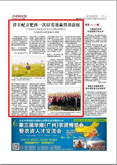 据悉,江苏兴化水稻基地是乐鱼体育与中国农大合作建立的最早的示范田之一,示范田产量从当初的1120斤/亩增加到1320斤/亩,净增200斤。良好的施肥效果带来的是洋丰肥销量的快速提升。据石德成经理介绍,兴化地区的洋丰肥料销量在2010年仅为200吨,自开展测土配方活动以后,农民认可洋丰肥,销量节节攀升,预计今年将超过1000吨。