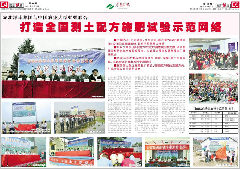 《农资导报》:湖北洋丰集团与中国农业大学强强联合 打造全国测土配方施肥试验示范网络