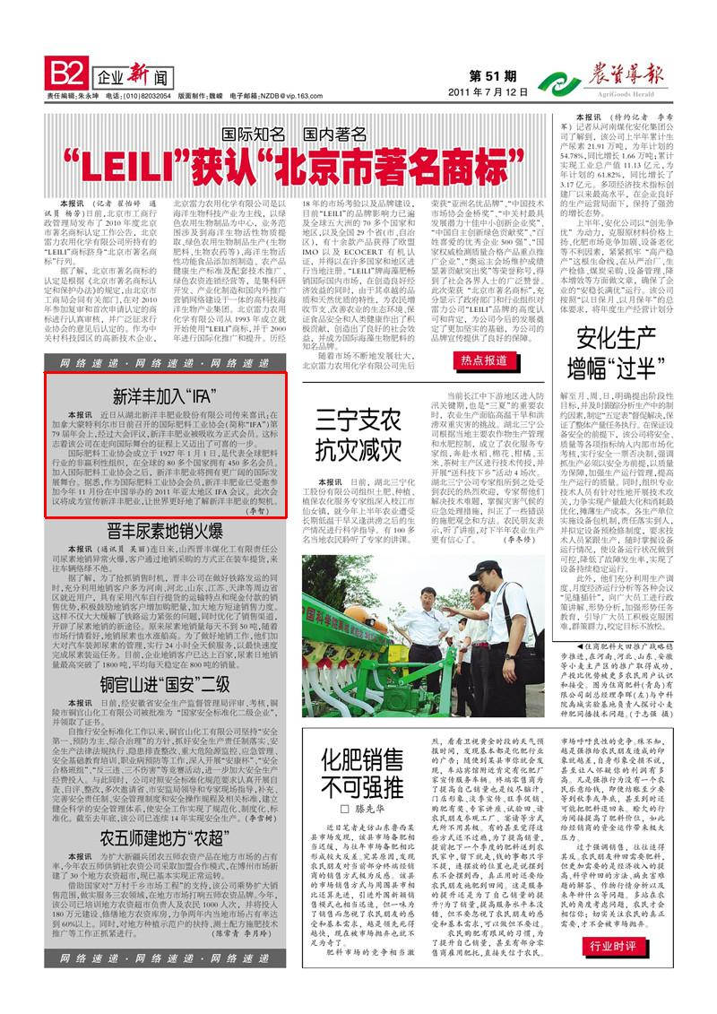 国际肥料工业协会成立于1927年1月1日,是代表全球肥料行业的非赢利性组织,在全球的 80 多个国家拥有 450 多名会员。加入国际肥料工业协会之后,乐鱼体育肥业将拥有更广阔的国际发展舞台。据悉,作为国际肥料工业协会会员,乐鱼体育肥业已受邀参加今年11月份在中国举办的2011年亚太地区IFA会议。此次会议将成为宣传乐鱼体育肥业,让世界更好地了解乐鱼体育肥业的契机。