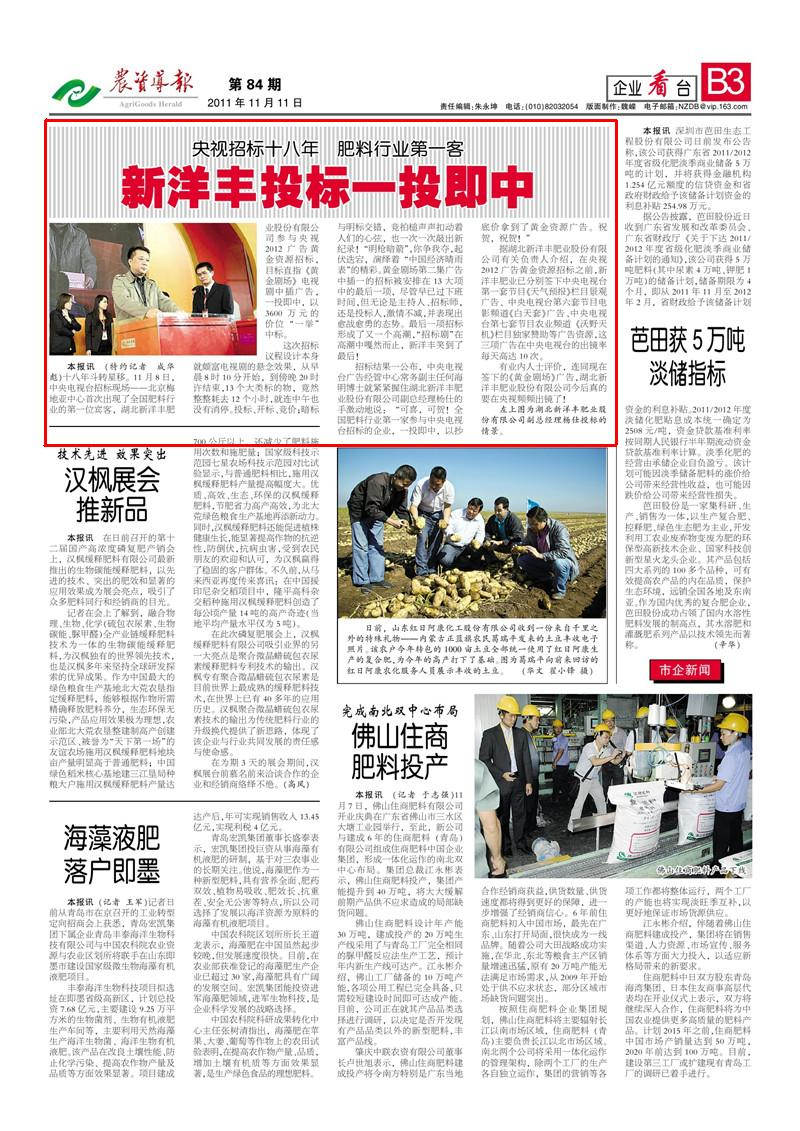 十八年斗转星移。11月8日,中央电视台招标现场--北京梅地亚中心首次出现了全国肥料行业的第一位宾客,湖北乐鱼体育肥业股份有限公司参 与央视2012 广告黄金资源招标,目标直指《黄金剧场》电视剧中插广告,一投即中,以3600万元的价位“一举”中标。