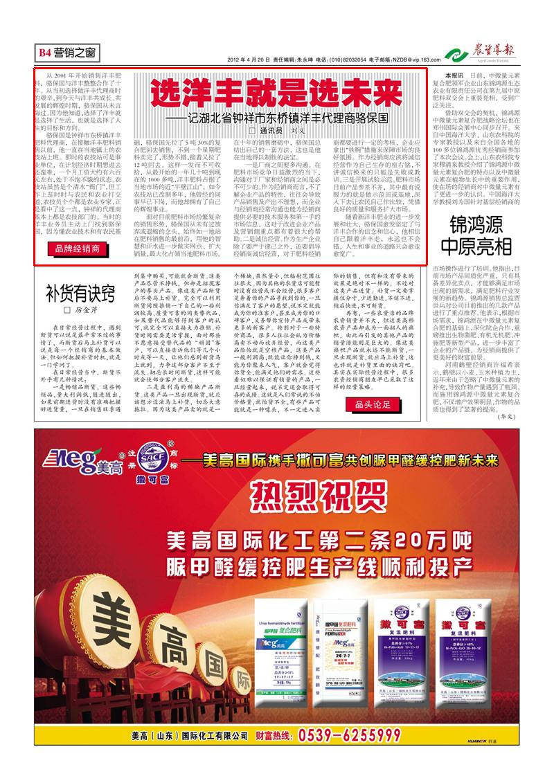 随着乐鱼体育肥业的进一步发展和壮大,骆保国愈发坚定了与洋丰合作的信念和信心,他相信自己跟着洋丰走,永远也不会错,人生和事业的道路只会愈走愈宽广。