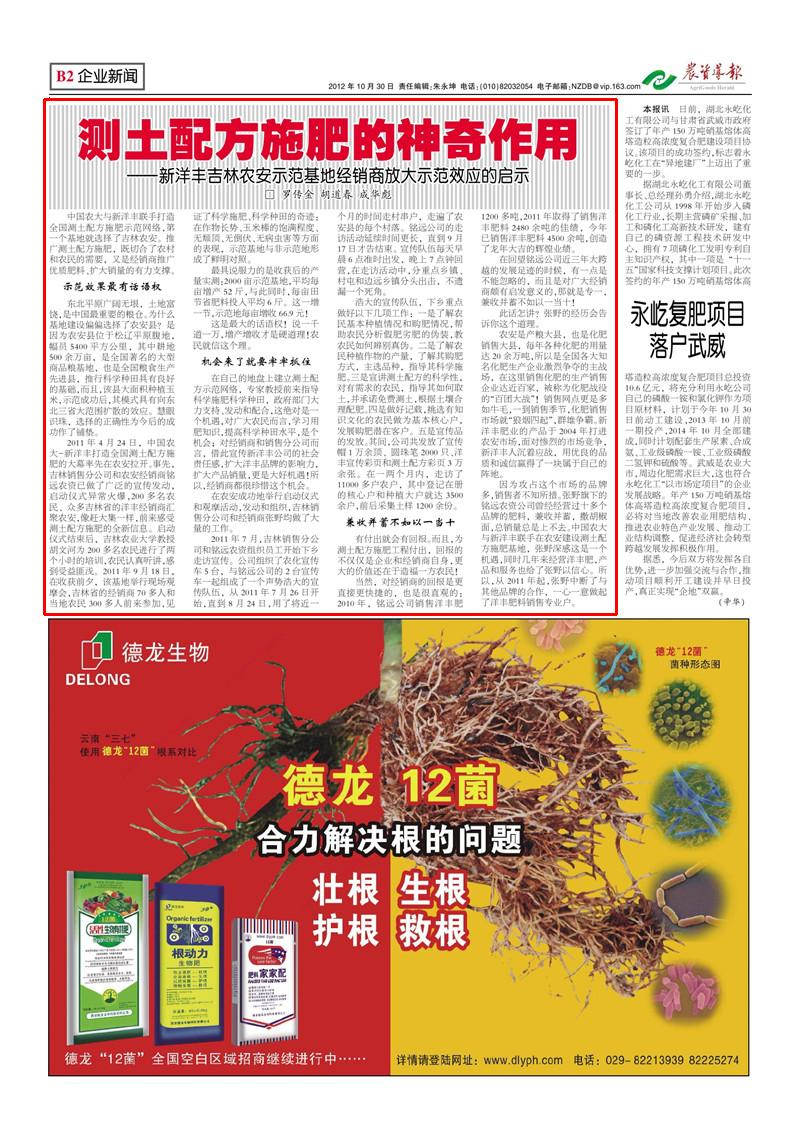 中国农大与乐鱼体育联手打造全国测土配方施肥示范网络,第一个基地就选择了吉林农安。推广测土配方施肥,既切合了农村和农民的需要,又是经销商推广优质肥料、扩大销量的有力支撑。