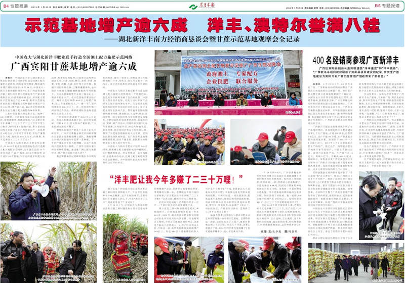 《农资导报》:示范基地增产六成 洋丰、澳特尔誉满八桂——南方经销商恳谈会暨甘蔗示范基地观摩会全记录