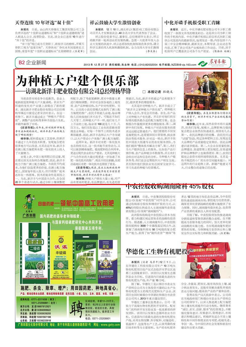 当前农资市场竞争日趋激烈,农业土地新政促使种植大户大量涌现,农业生产环境的变化对产业链上游提出了新的要求。湖北乐鱼体育肥业股份有限公司总经理杨华锋近日接受记者采访时表示,在这一形势下,乐鱼体育通过成立“种植大户俱乐部”、调整产品结构等多种手段抢占先机,并最终赢得了市场。