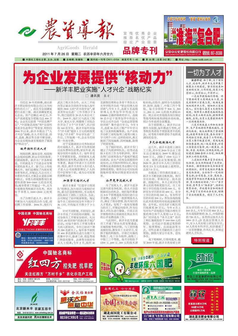 历经近30 年的拼搏,湖北乐鱼体育肥业股份有限公司已从当初的作坊式小厂,成长为全国磷复肥行业前三强、湖北省磷复肥龙头企业,资产总额达45 亿元,年生产高浓度复合肥能力达400万吨;企业先后获得“中国名牌产品”、“中国驰名商标”和“全国科技进步先进单位”等荣誉。特别自2006 年以来,乐鱼体育提出了“人才兴企”战略,在人才的引进、培训、选拔、激活等方面不断创新,为企业实现快速发展提供了强劲的“核动力”。