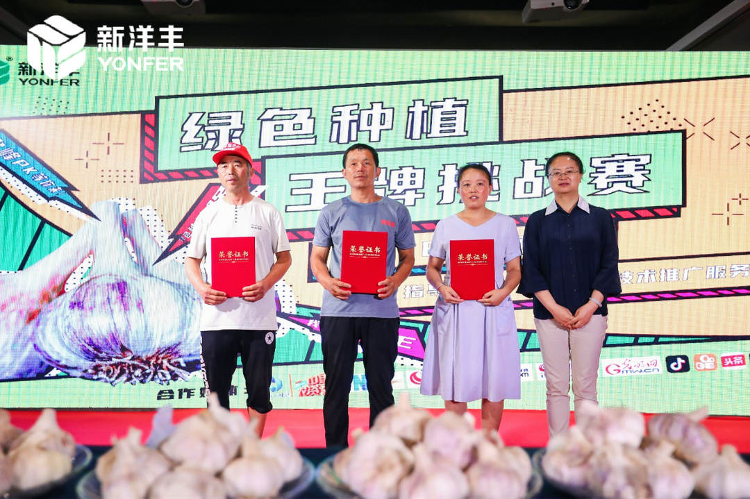 经过紧张测评,参赛选手孙明月最终以总重3.32斤(10头大蒜总重)、直径均值85.923mm获得本次挑战赛“大蒜王”称号!“蒜王”孙明月现场分享种植经验时透露道,自己是乐鱼体育多年的忠实用户,日常使用洋丰硫、洋丰正好系列产品,“乐鱼体育的好产品加好服务使我实现了亩产大蒜4000斤!”