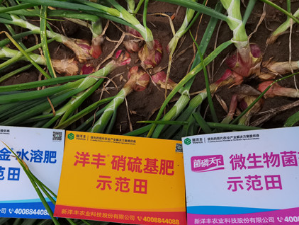 观摩会现场,看着示范田毛葱长势,葱农们频频点头,不断询问蒋亮用肥体验。蒋亮往年用的不是洋丰肥料,后期脱肥现象频出,极大影响了毛葱鳞茎的膨大,进而影响产量。今年3月份,正在他苦恼不已时,乐鱼体育技术服务团队来到他们村,并针对他在毛葱种植中出现的问题,结合公司不同产品的特性及毛葱生长习性,利用硝硫基闪侠、菌磷天下、水白金、福根多等几款功能性肥料制定了乐鱼体育毛葱全程营养方案,并由公司技术顾问吕忠富老师等人全程跟踪技术指导。
